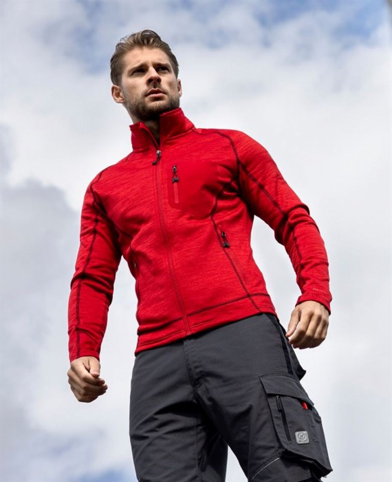 Bluza Ardon Breeffidry melange spełnia normy EN 13688 (podstawowe wymagania dla odzieży ochronnej). Bardzo komfortowa bluza w designie melange/ SLIM FIT. Kolor czerwony, rozmiary od XS do 5XL. Wyprodukowana ze specjalnego materiału ARDON/ BREEFFIDRY (95% poliester/ 5% spendex/ 300 g/m2). Materiał jest bardzo funkcjonalny i komfortowy w noszeniu. Doskonale oddychalny, odporny na ścieranie, posiada zdolność odprowadzania wilgoci na zewnątrz, jest szybkoschnący, może być stosowany w niekorzystnych warunkach atmosferycznych. Wewnętrzna strona bluzy jest z bardzo przyjemnego, miękkiego materiału. Dopasowany fason z formowanymi rękawami, praktyczny krój z zapięciem na suwak z osłoną podbródka, stójka chroniąca szyję przed chłodem, dwie przestronne ukryte kieszenie, designerska kieszeń na piersi. Dynamiczny sportowy styl, elastyczność czterokierunkowa i doskonałe dostosowanie do ruchu.