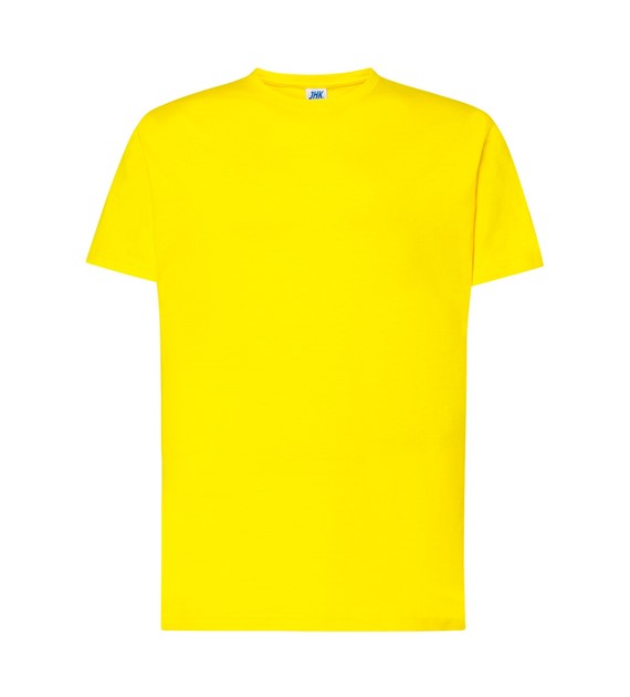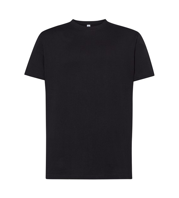 T-shirt męski z krótkim rękawem. Brak bocznych szwów. Podwójne szwy na ramionach. Wzmocniony lycrą ściągacz. Taśma wzmacniająca. 100% bawełna stabilizowana.
