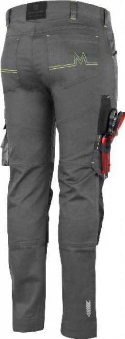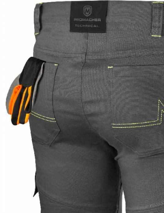 Każdy kto podczas pracy lubi mieć wszystko pod ręką i nie chce dźwigać ciężkiej torby, doceni że w tych spodniach jest mnóstwo praktycznych kieszeni i szlufek na narzędzia, taśmę mierniczą, telefon komórkowy, ołówek itp. Wszystko, co potrzebne, jest więc w zasięgu ręki.