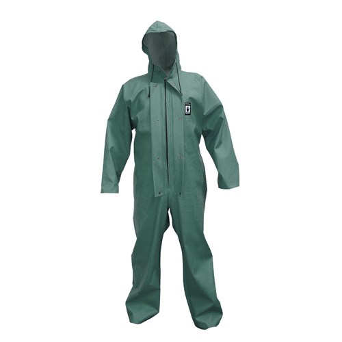 Kombinezon model 104/ PROS spełnia normy EN 13688 (odzież ochronna, wymagania ogólne)/ EN 343 (odzież ochronna, ochrona przed deszczem). Wysokiej jakości wodochronny kombinezon do zadań specjalnych, ochroni przed niesprzyjającymi warunkami, wiatrem, deszczem czy też słoną wodą. Występują w kolorze zielonym i niebieskim w rozmiarach XS/48, S/50, M/52, L/54, XL/56, XXL/58, XXXL/60, XXXXL/62. Wykonane z PLAVITEX materiał na podkładzie poliestrowym, jednostronnie powlekany PVC. Materiał cechuje się zwiększoną odpornością na tarcie, zginanie przy ujemnych temperaturach do -50ºC. Zapewnia pełną ochronę w niesprzyjających warunkach atmosferycznych. Technika obustronnego zgrzewania zwiększa wytrzymałość szwów. Kombinezon jednoczęściowy zapinany na zamek kryty podwójną plisą na napy, kaptur zapinany na napy z funkcjonalnym ściągającym sznurkiem. W rękawach i nogawkach zastosowano ściągacze, które zapobiegają przedostawaniu się wody i innych substancji do środka. Odzież tego typu znajduje zastosowanie w ogrodnictwie, rybołówstwie, myciu i czyszczeniu, usługach komunalnych, przemyśle metalurgicznym, elektromaszynowym, mineralnym, spożywczym, platformach wiertniczych i gospodarstwach domowych.