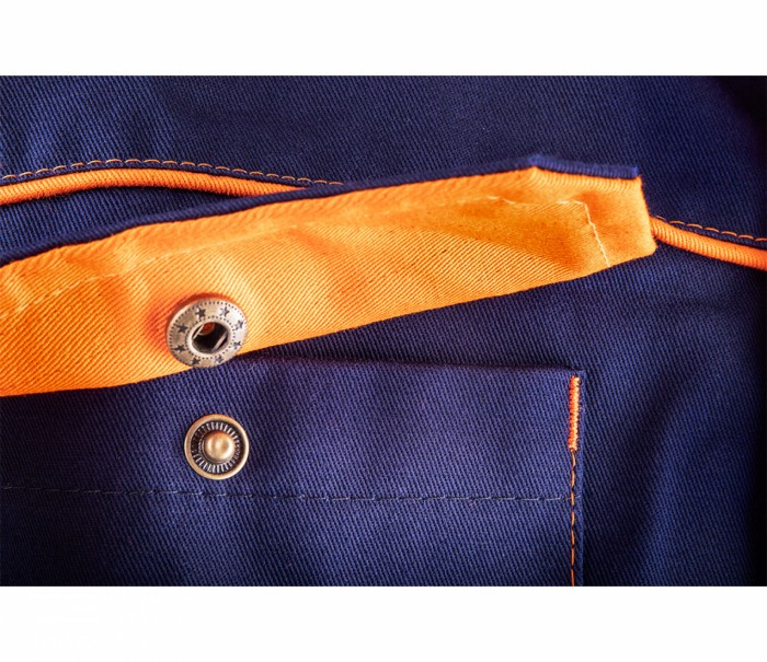 Budowa/szycie: wstawki kolorystyczne, lamówki kolorystyczne, pojedyncze i podwójne szwy, szyte mocną nicią,