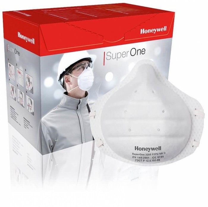 Półmaska jednorazowa HONEYWELL SuperOne 3205 V2 FFP2 NR D/ HONEYWELL spełnia normy EN 149 (Sprzęt ochrony układu oddechowego-półmaski filtrujące do ochrony przed cząstkami). Bardzo lekka, kompaktowa o unikalnej konstrukcji i kształcie z dużą pojemnością wewnętrzną. Przyjemna w dotyku nie powoduje podrażnień, wykonana z delikatnego materiału. Ukształtowana część górna w pobliżu zarysu nosa zapewnia dopasowanie do wszystkich kształtów twarzy. Półmaska odpowiada za ochronę przed szkodliwymi cząsteczkami, pyłami, wirusami. Maseczka zapewnia doskonałą widoczność i swobodną komunikację. Formowany kształt gwarantuje komfort noszenia jest kompatybilny z okularami. Podwójne, elastyczne gumki pomagają w umiejscowieniu maseczki w odpowiednim miejscu. Półmaska nie zawiera lateksu, silikonu, PVC. Skuteczna Ochrona dróg oddechowych musi być prosta i komfortowa dla każdego użytkownika.