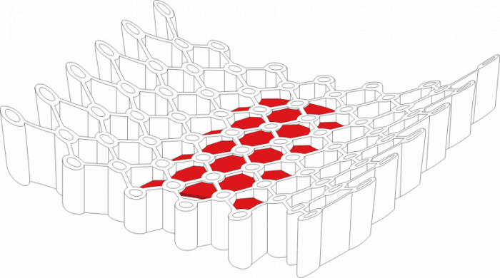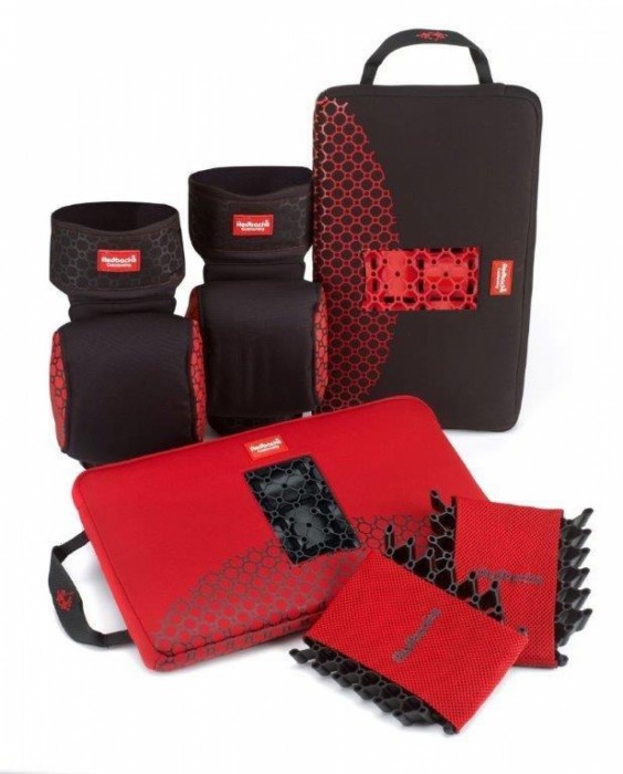 System REDBACKS to opatentowana struktura materiału z miękką wkładką elastyczną (Leaf-spring) osadzoną w osnowie na wzór plastra miodu do pochłaniania i rozłożenia sił nacisku.