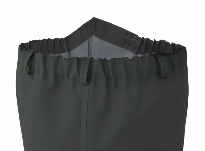 Spodnie wędkarskie do pasa z kaloszami SP03/ PROS spełniają normy EN 13688 (odzież ochronna, wymagania ogólne)/ EN 343 (odzież ochronna, ochrona przed deszczem)/ EN 20347- OB SRC (obuwie zawodowe, typ ochrony OB SRC). Rewelacyjne, wytrzymałe spodnie wędkarskie z wgrzanymi na stałe kaloszami. Występują w kolorze Zielonym w rozmiarze od 39 do 47. Wykonane z PLAVITEX HEAVY DUTY gramatura: 680 g/m2/ grubość materiału: 0,68 mm. Materiał na podkładzie poliestrowym, jednostronnie powlekany PVC. Materiał cechuje się zwiększoną odpornością na tarcie, zginanie przy ujemnych temperaturach do -50ºC. Zapewnia pełną ochronę w niesprzyjających warunkach atmosferycznych. Technika obustronnego zgrzewania zwiększa wytrzymałość szwów. W pełni nieprzemakalne, do brodzenia w wodzie. Cechują się bardzo dobrymi właściwościami antypoślizgowymi. Solidna podeszwa z grubym protektorem gwarantuje stabilność nawet na miękkim i śliskim podłożu. Dopasowanie za pomocą pasa z gumą i dwóch zatrzask zapewnia komfort użytkowania i swobodę ruchu. Wytrzymały materiał zapewnia długotrwałe i komfortowe użytkowanie a fason daje możliwość szybkiego zakładania i zdejmowania. Model sprawdzony w wędkarstwie, rybołówstwie, rolnictwie i leśnictwie. Wygodne i wodoodporne, swobodne w ruchu wodery są niezastąpione dla wędkarzy łowiących w rzekach, wykorzystywane przy połowach i ciężkiej pracy rybackiej. Dają największe możliwości na łowisku. Niezbędne wyposażenie każdego wędkarza chcącego skutecznie łowić na spinning lub muchę. Sprawdzą się również podczas mycia i czyszczenia w wodociągach, kanalizacji i usługach komunalnych.
