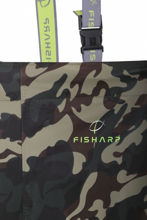 Spodniobuty FISHARP MORO, model produkowany z lekkiej wodoochronnej tkaniny Flyer Tex, dającej podwyższony komfort użytkownika dzięki zoptymalizowanej wadze produktu. Technika obustronnego zgrzewania prądem wysokiej częstotliwości zapewnia 100% szczelność szwów. Wyposażony w kieszeń wewnętrzną i regulowane szelki.