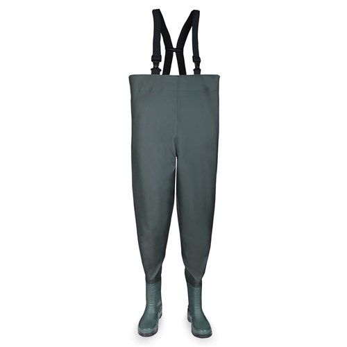 Spodniobuty junior model SB01-J/ PROS spełniają normy EN 13688 (odzież ochronna, wymagania ogólne)/ EN 343 (odzież ochronna, ochrona przed deszczem). Bardzo lekkie i wygodne spodniobuty dla młodych pasjonatów wędkarstwa, spędzających aktywnie czas wolny. Rewelacyjne, wytrzymałe spodniobuty z wgrzanymi na stałe kaloszami, regulacją obwodu i długości szelek, które są wymienne, zapinane plastikową klamrą. Występują w kolorze zielonym, rozmiary: 36, 37, 38, 39, 40, 41, 42. Wykonane z PLAVITEX HEAVY DUTY gramatura: 500 g/m2. Materiał na podkładzie poliestrowym, jednostronnie powlekany PVC. Materiał cechuje się zwiększoną odpornością na tarcie, zginanie przy ujemnych temperaturach do -50ºC. Zapewnia pełną ochronę w niesprzyjających warunkach atmosferycznych. Technika obustronnego zgrzewania zwiększa wytrzymałość szwów. W pełni nieprzemakalne, do brodzenia w wodzie. Solidna podeszwa z grubym protektorem gwarantuje stabilność nawet na miękkim i śliskim podłożu. Wygodne i wodoodporne, swobodne w ruchu spodniobuty są niezastąpione dla młodych wędkarzy łowiących w rzekach oraz uprawiających aktywność na świeżym powietrzu.