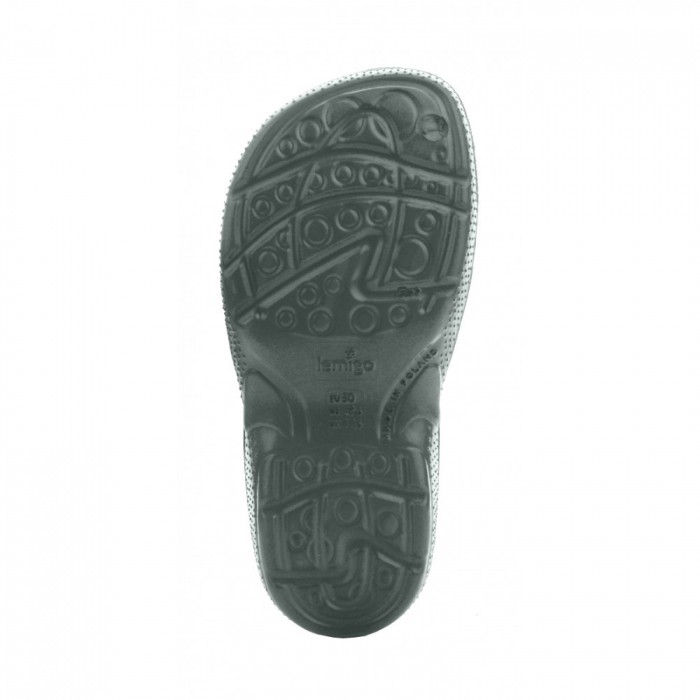 Klapki LEMIGO DOCTOR 855. Lekkie i elastyczne obuwie wykonane z wielką starannością, by zadowolić i zapewnić komfort każdemu użytkownikowi. Występują w kolorze zielonym, rozmiary od 36 do 47. Wykonane z lekkiego, wodoodpornego i wytrzymałego tworzywa EVA. Klapki są niesamowicie wygodne, pianka EVA jest sprężysta, dzięki czemu świetnie absorbuje wstrząsy. Podeszwa zapewnia dobrą przyczepność. Klapki wyposażono w pasek na piętę, który utrzymuje obuwie we właściwej pozycji, gwarantuje lepszą stabilność. W części przedniej znajdują się otwory wentylacyjne zapewniają cyrkulację powietrza i zapobiegają zawilgoceniu. Idealne klapki do użytku codziennego, do ogrodu. Wyjątkowo łatwe w czyszczeniu.