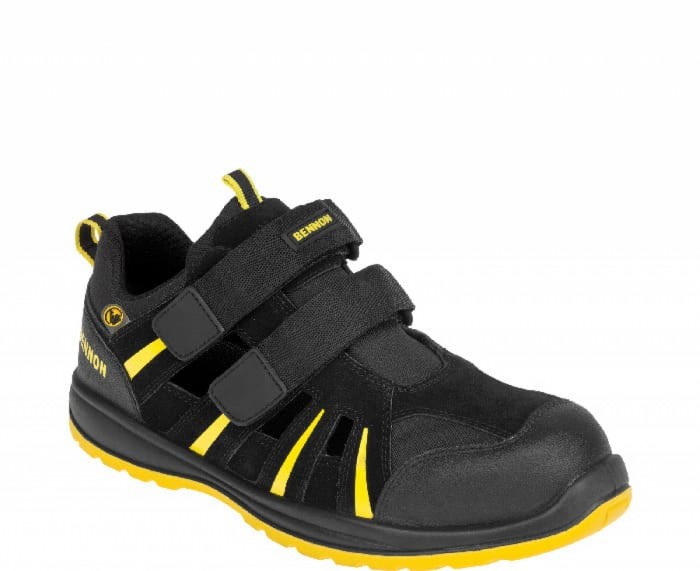 Bezpieczne sandały, bez elementów metalowych, wykonane z połączenia dwoiny i materiału MESH. Zapinanie butów jest szybkie i łatwe dzięki zastosowaniu rzepów. Obuwie posiada kompozytowy podnosek, który chroni palce przed urazami. Wygodę w noszeniu zapewnia amortyzacja pięty.