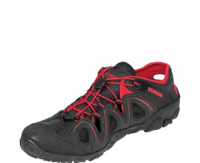Uniwersalne, lekkie sandały przeznaczone do całorocznego użytkowania zarówno w terenie, jak i do użytku codziennego. Sandały są wyposażone w boczną ochronę z TPU oraz system sznurowania Lacer XTR dla lepszego wsparcia i stabilizacji stopy. Cholewka jest wykonana z ultralekkiego materiału tekstylnego. Oferujemy ten model w kolorze czarnym z czerwonymi detalami.