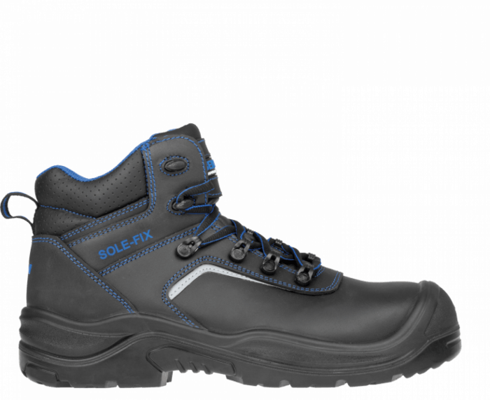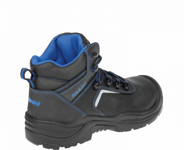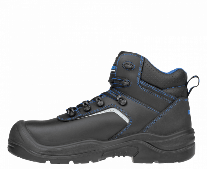 Trzewiki bezpieczne BNN RAPTOR S3 SRC NM HIGH spełniają normy EN-20345. Klasyczne buty robocze na stabilnej podeszwie. Cholewka z wodoodpornej skóry bydlęcej. Podszewka z tkaniny warstwowej MESH i trójkomponentowa, anatomicznie ukształtowana wkładka WARRIOR ze szwami antystatycznymi i elementem odciążającym w części piętowej, przednia część perforowana. Trzewiki wyposażono w kompozytowy podnosek, odporny na uderzenia z siłą 200J, skutecznie zabezpieczający palce przed urazami. Podeszwa z poliuretanu o dwóch gęstościach (PU/PU) zapewnia optymalną amortyzację, elastyczność, olejoodporność i właściwości antypoślizgowe na powierzchniach wszystkich typów. Trzewiki odznaczają się odpornością na przebicie, posiadają kevlarową wkładkę antyprzebiciową chroniącą przed przekłuciem ostrym elementem od podłoża. Obuwie idealne dla wymagających użytkowników, dbających o bezpieczeństwo, wygodę i komfort pracy. Doskonale nadaje się do trudnych warunków pracy, jak przemysł, budownictwo, prace ziemne.
