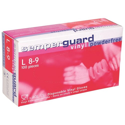 Rękawice ochronne SEMPERGUARD VINYL, ARDON, spełniają normy EN 420/ EN 374-2, CAT.I. Jednorazowe rękawice, wykonane z winylu, gładkie, bezpudrowe, bezbarwne. Miękkie, elastyczne, wytrzymałe na rozciąganie, rolowany mankiet ułatwia zakładanie i zdejmowanie rękawic oraz zapobiega odwijaniu się. Rękawice doskonale dopasowują się do dłoni, co sprzyja zręczności i precyzji wykonywanych czynności. Bezpieczne dermatologicznie. Wykorzystywane w medycynie oraz kosmetologii, nie zawierają lateksu ani akceleratorów, mają niską odporność na oleje, ozon oraz tłuszcz.