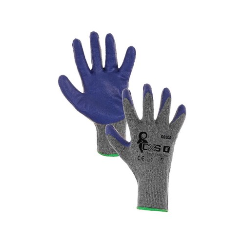 Profesjonalne rękawice robocze CXS COLCA, CANIS, spełniają normy, EN 420/ EN 388/ EN 407. CAT.II. Wykonane z dzianiny poliestrowej z dodatkiem bawełny. Strona chwytna i końcówki palców, oblane lateksem o chropowatej strukturze czynią rękawice antypoślizgowymi i bardziej odpornymi na uszkodzenia mechaniczne typu: ścieranie, przecięcie, rozdarcie, przetarcie. Elastyczny ściągacz zapobiega zsuwaniu rękawicy i sprzyja lepszemu dopasowaniu do dłoni. Dedykowane pracy w suchym środowisku o średnim poziomie ryzyka. Świetna propozycja dla prac pomocniczych w budownictwie, obsłudze magazynowej, logistyce.