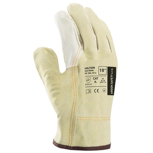 12,41 zł – 13,00 zł z VATRękawice robocze HILTON, spełniają normy EN 388. CAT.II. Materiał na dłoni i palcu wskazującym licowa skóra świńska, grzbiet i mankiet dwoina wieprzowa. Rękawice całodłonicowe, część chwytna wykonana z jednego kawałka skóry licowej. Krótki mankiet […]